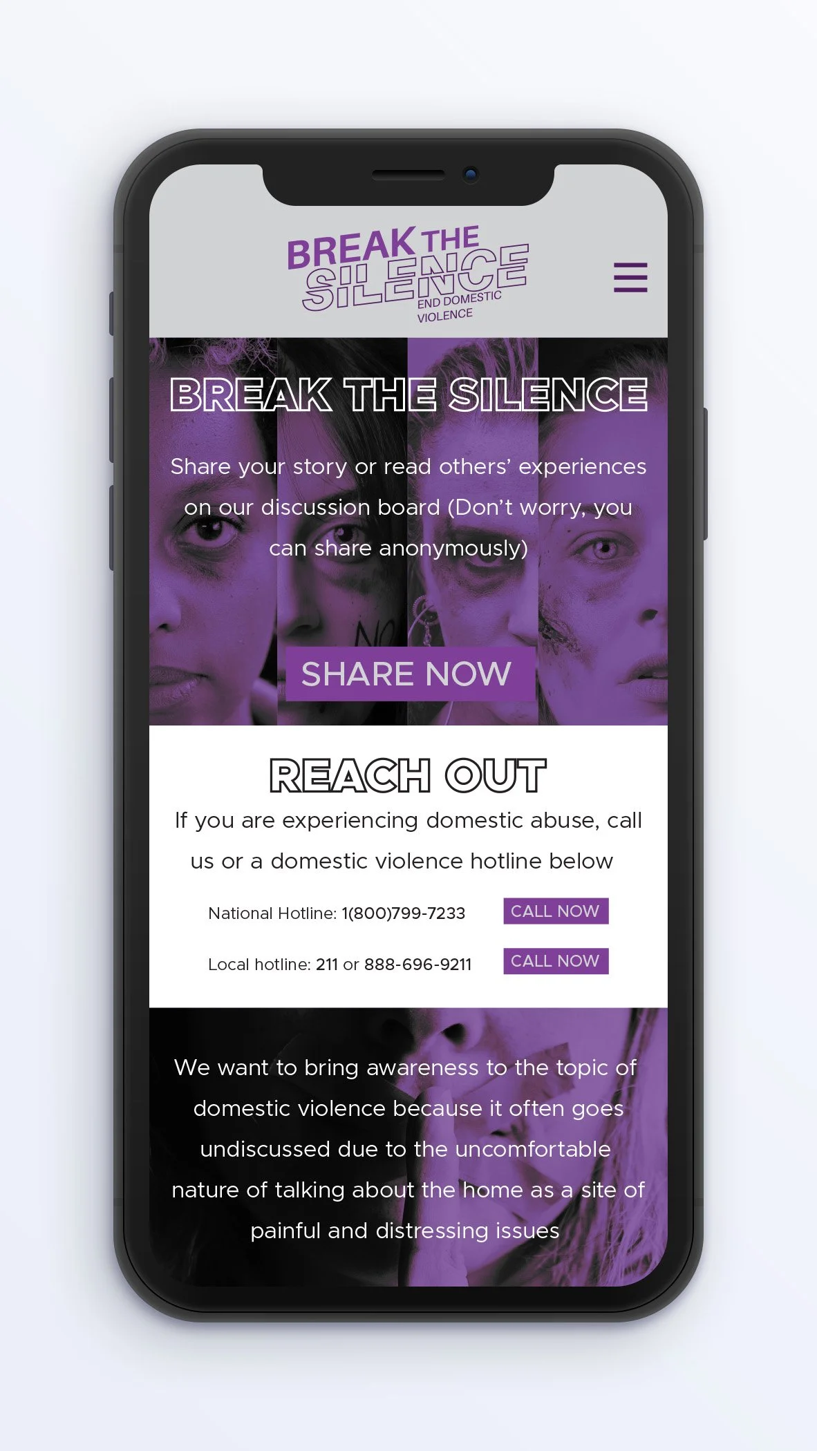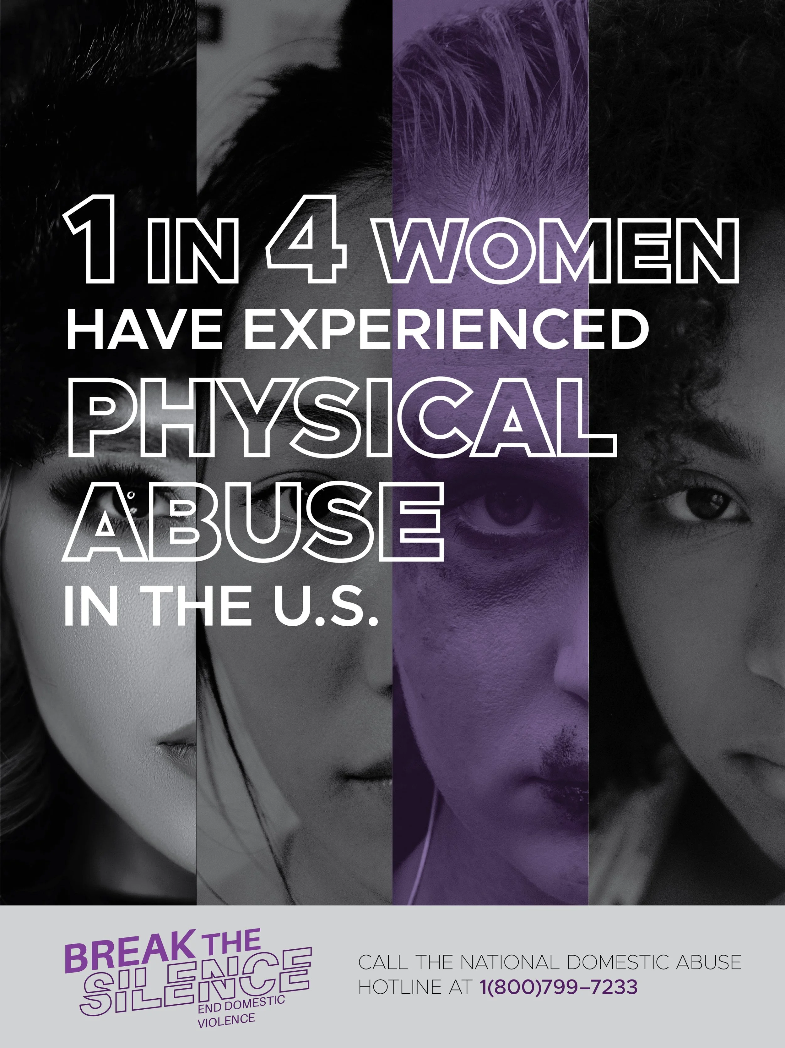 This social awareness campaign is grounded in statistical research on domestic violence. Purple, the official color of domestic violence awareness, is the sole color used throughout the campaign to emphasize key statistics and draw attention to this critical issue.