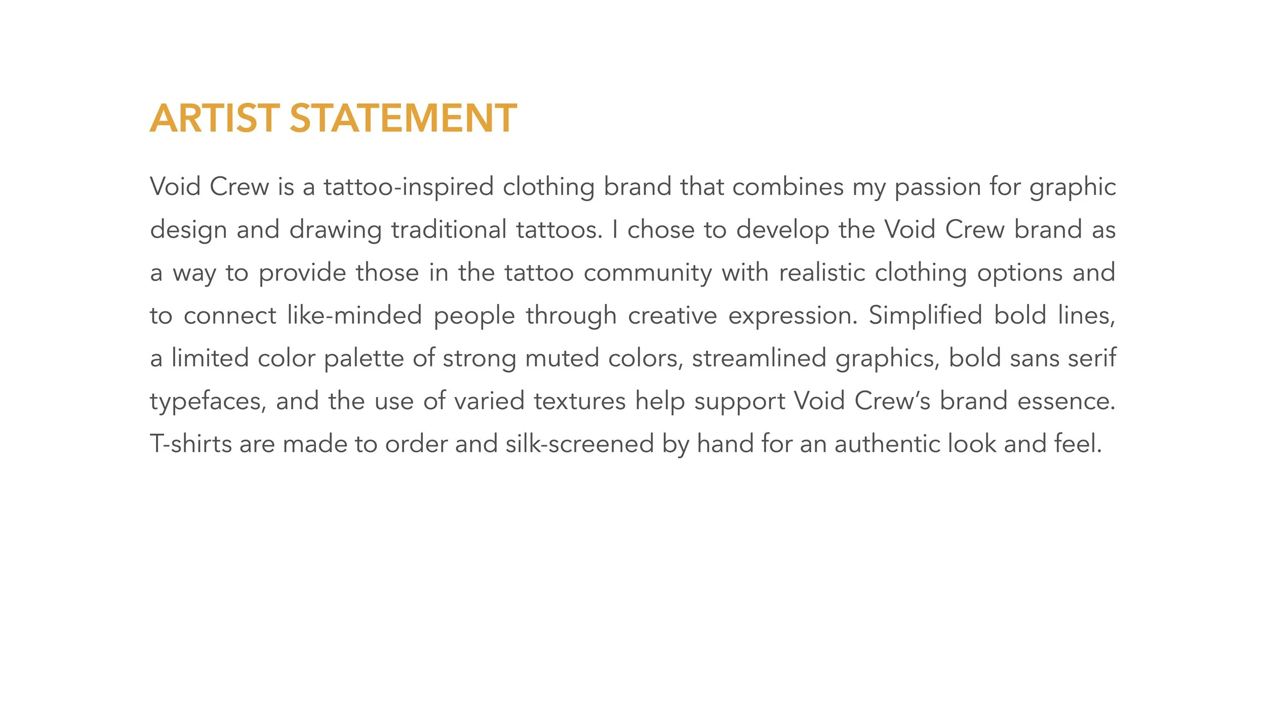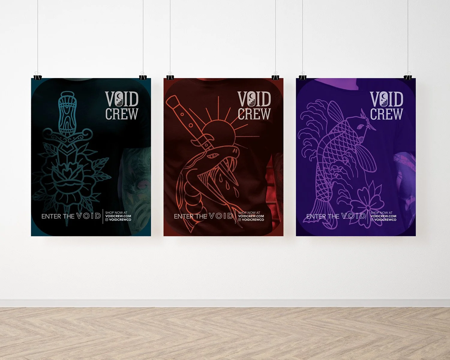Void Crew is an apparel brand concept that sells tattoo-inspired clothing. This brand campaign concept won Gold at the 2023 American Advertising Awards hosted by AAF Buffalo.